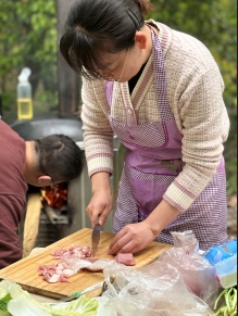 大家簇?fù)碓谠钆_(tái)前,按專長各顯神通,有些人擅長切菜,有些人擅長掌握柴火的火候,有些人擅長廚藝和配菜,合力完成了一頓香溢撲鼻的美食餐。整個(gè)野炊過程有趣而開心,開心和美味交融在一起,陶冶了同事之間的情操。
