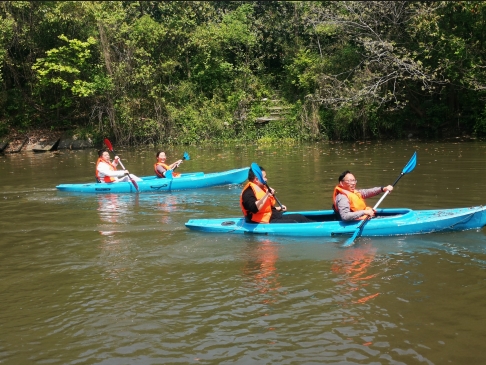 野炊的余興未盡,真人CS、皮劃艇,騎馬以及射箭場館又將我們帶入快樂而刺激的活動(dòng)之中。首先皮劃艇體驗(yàn),只見湖面上幾位同事盡情地劃動(dòng)雙槳,感受水的柔美和風(fēng)的輕拂,這一刻仿佛置身于大自然,在雙槳的劃動(dòng)下,湖面波光漣漣,勇士們忘卻了城市的喧囂,陶醉在船艦前行中。